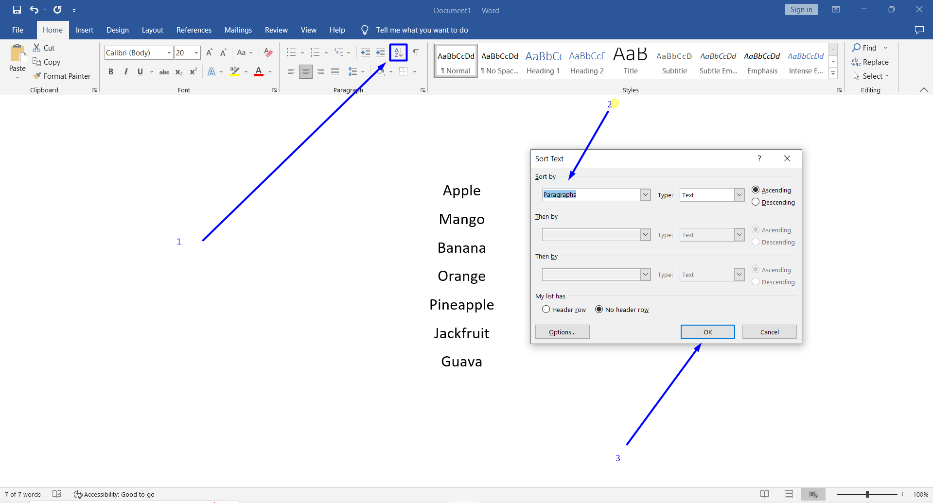 এখন মাইক্রোসফট ওয়ার্ডের লিস্ট sort করা আপনার জন্য আরও সহজ! লিস্ট তৈরি করুন এবং Sort txt এ ক্লিক করে ok দিন, দেখবেন লিস্ট Alphabet অর্ডারে সর্ট হয়ে গেছে।