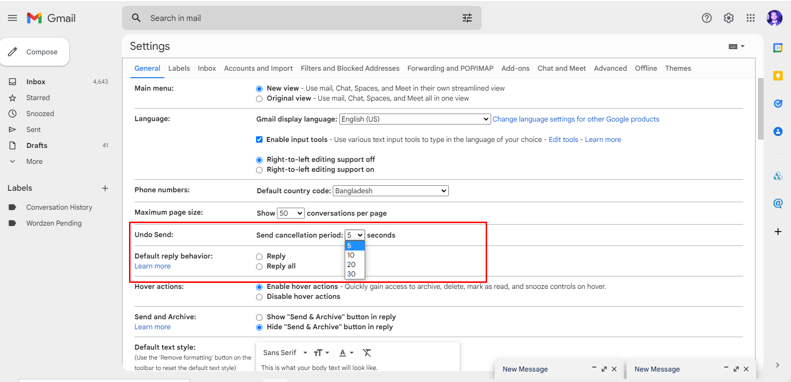 জিমেইলের Undo ফিচারটি বেশ উপকারী। ভুল করে কোন মেইল পাঠালে সেটা আবার Undo করা যায়। যদিও সময়টা খুব বেশি না, দ্রুত সময়ের মধ্যে সিদ্ধান্ত নিতে হয়ে মেইল কি যাবে নাকি যাবে না। আপনার জন্য খুশির খবর হচ্ছে এই টাইমটা আপনি চাইলে বাড়িয়ে নিতে পারেন।