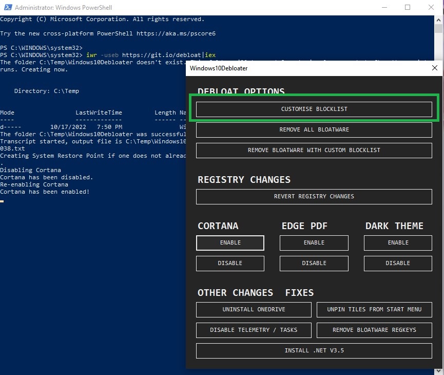 সব শেষে আমরা Bloatware রিমুভ করব। প্রথমেই আপনি Debloat নামে অপশনটি পাবেন। Remove All এ দিলে সব অ্যাপ রিমুভ হয়ে যাবে, এটা করা উচিৎ হবে না। “Customize Blocklist“ এ ক্লিক করুন।