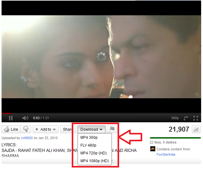ব্যাস এবার ইউটিউব এ গিয়ে যেকোনো একটি ভিডিও চালু করুন দেখুন নিচের ছবির মত নতুন একটি অপশন যুক্ত হয়েছে। ব্যাস এবার আপনার পছন্দ আকার নির্বাচন করে ডাউনলোড করুন আপনার প্রিয় ভিডিও টি।