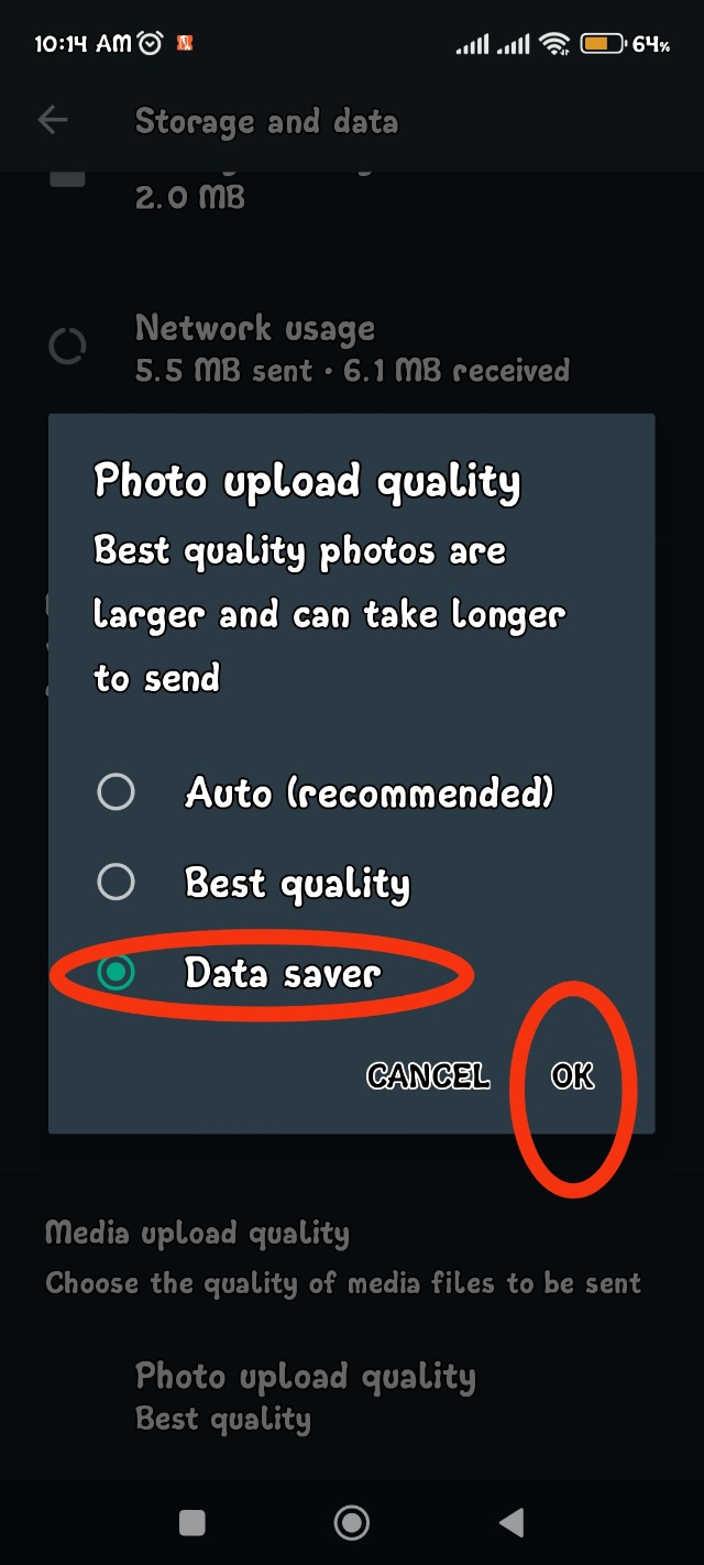 Data Sevar সিলেক্ট করে Ok করুন। ব্যাস এরপর থেকে আপনার ফোন এ হোয়াটস অ্যাপ এ তেমন একটা এমবি খরচ খরচ হবেনা।