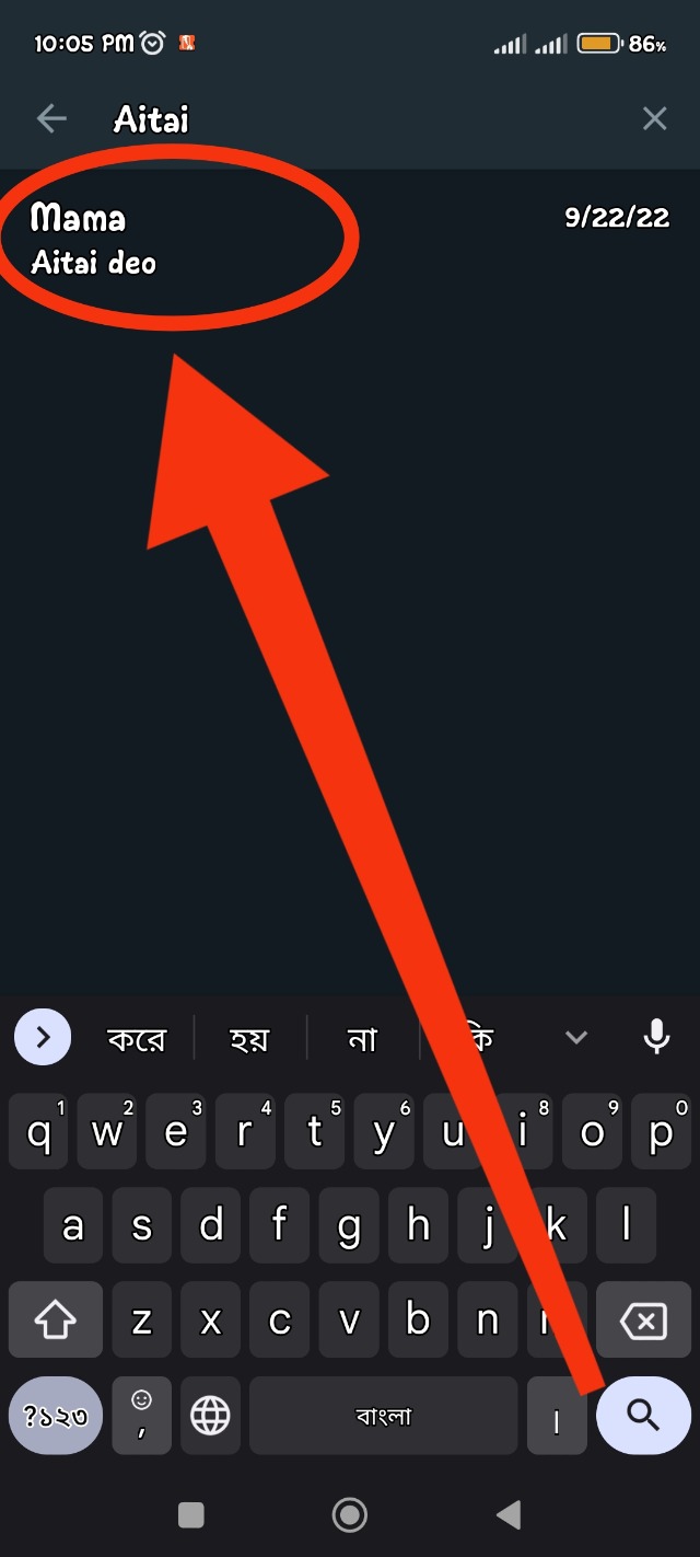 সেটা করার জন্য সেই চ্যাট এর একটি লাইন জানা জানা থাকতে হবে। আপনাকে প্রথমেই হোয়াটস অ্যাপ এ ঢুকতে হবে। এরপর হোয়াটস অ্যাপ এর সার্চ অপশন এ ক্লিক করতে হবে। ক্লিক করে আপনার সেই এর লাইনে থাকা কয়েকটি শব্দ লিখে সার্চ করুন। তাহলে নিচে দেখতে পাবেন যে আপনার সেই বন্ধুর চ্যাটিং এ সেই চ্যাটটি দেখার অপশন এসেছে।