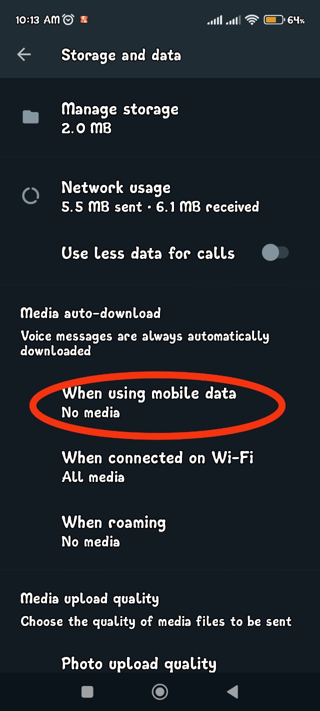 এখন দেখবেন যে When Using Mobile Data এর নিচে No Media লেখা আছে। এইখানে No Media লেখা থাকলে বুঝবেন যে কাজ হয়েছে। নিচের দেখানো Photo Upload Quality তে ক্লিক করুন।
