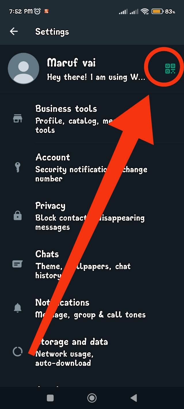 সেটিংস এ উপরে ডান দিকে একটি Qr Code এর মত চিহ্ন পাওয়া যাবে। সেই চিহ্ন তে ক্লিক করুন।