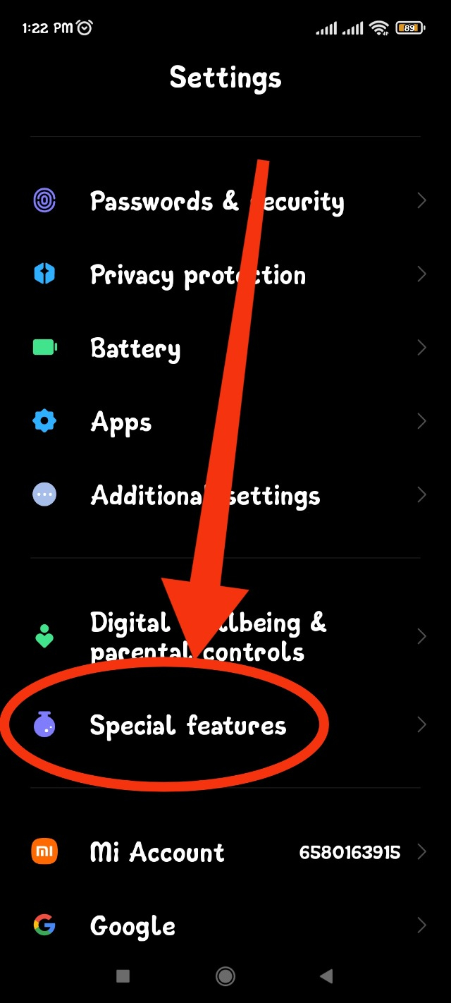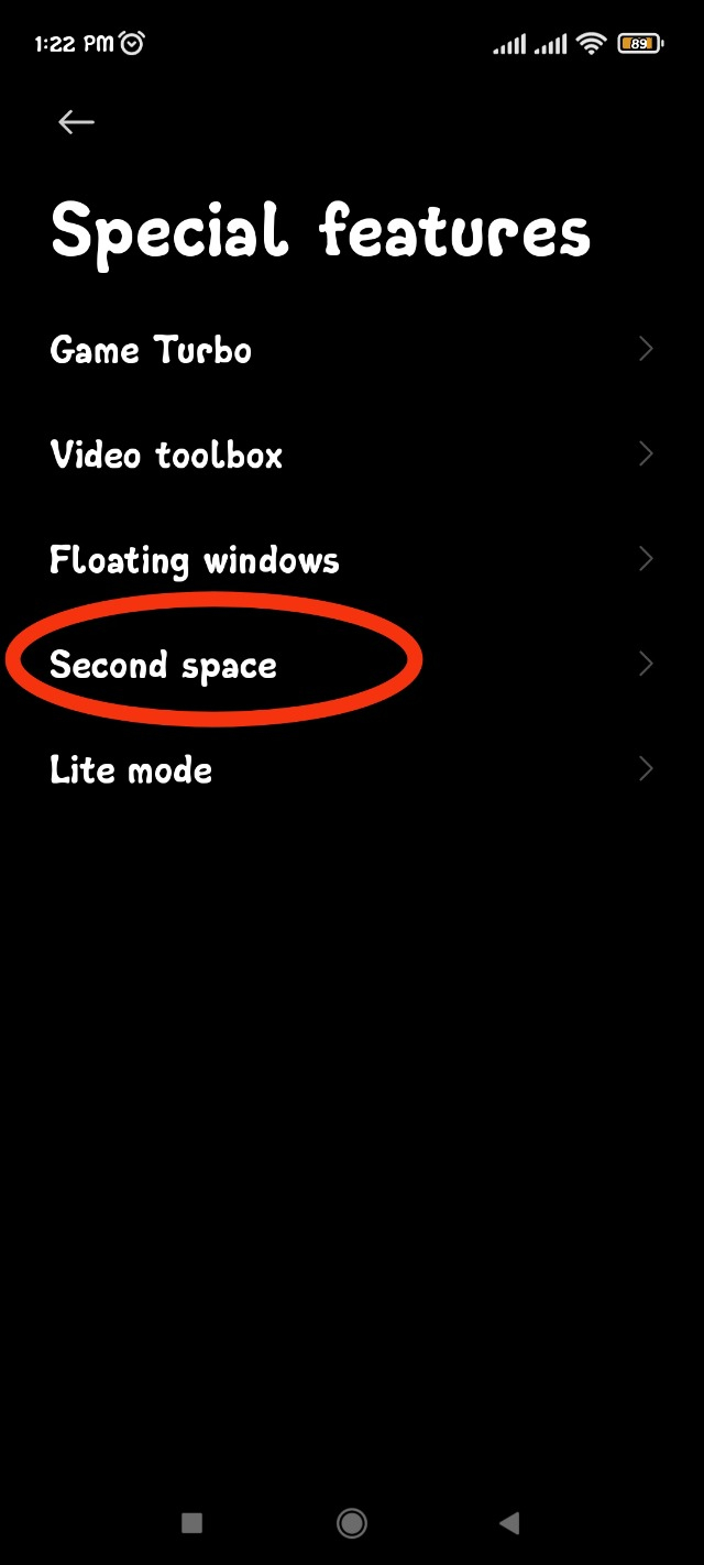 এছাড়াও আপনারা চাইলে আলাদা আলাদা রিংটোন আলাদা আলাদা ওয়েলপেপার ও সেট করতে পারবেন একই ফোন এ। তো আপনাদের কাঙ্ক্ষিত সেই Second Space টি ব্যবহার এর জন্য আপনাকে প্রথমে আপনার ফোনের সেটিংস এ যেতে হবে। সেটিংস এ ঢুকে স্পেশাল ফিচার অপশন এ ক্লিক করতে হবে।