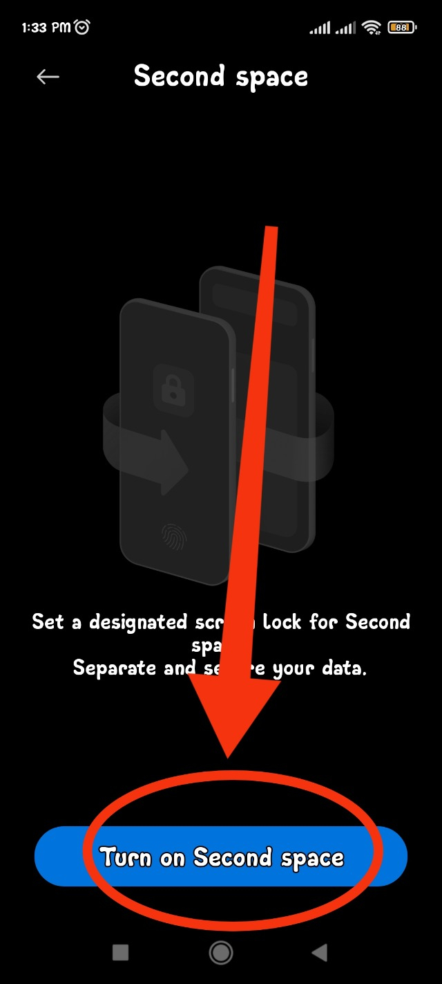 এখন ছোট্ট একটা কাজ করেন। ফোন টা লক করে জাস্ট আপনার ফার্স্ট স্পেস পাসওয়ার্ড বা ফিঙ্গার প্রিন্ট দিন। দেখবেন যে আপনার ফার্স্ট স্পেস টি ওপেন হয়ে গেছে। এরপর আবার লক করুন। লক করে সেকেন্ড স্পেস এর পাসওয়ার্ড বা ফিঙ্গার প্রিন্ট দিন। দেখবেন ফোন টি সেকেন্ড স্পেস এর মত নতুন করে চালু হচ্ছে।