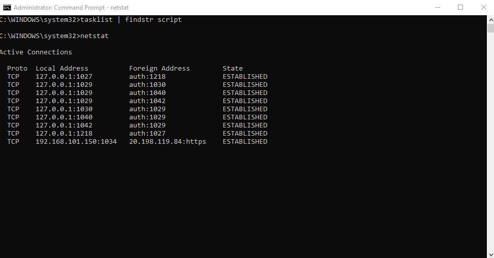 আপনার পিসির একটিভ কানেকশন গুলোর প্রোটোকল দেখতে নিচের কমান্ড দিন