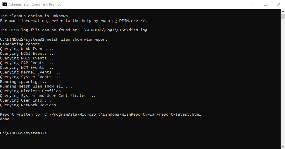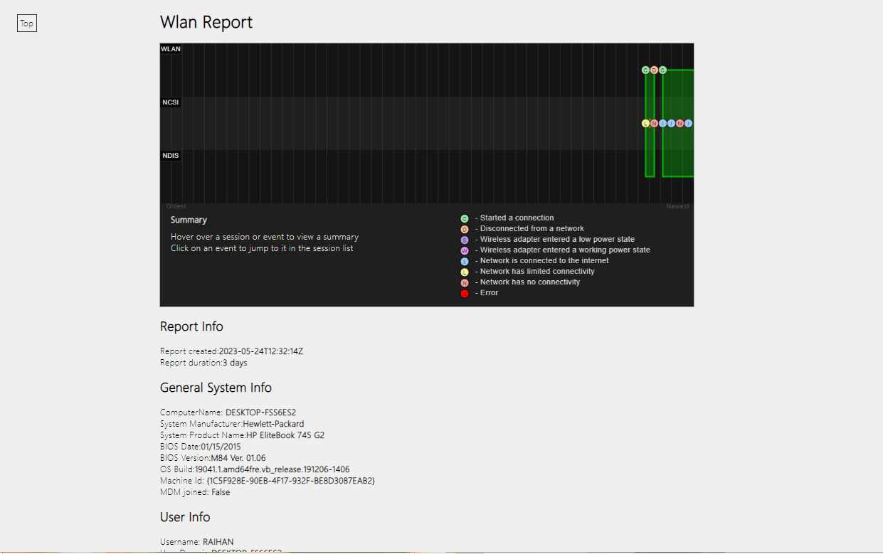 আপনি wlan এর বিস্তারিত রিপোর্ট পেতে নিচের কমান্ডটি ব্যবহার করতে পারেন