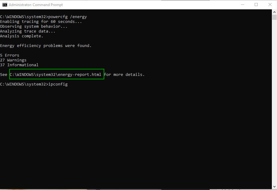 আপনি যদি পাওয়ার এনার্জি নিয়ে রিপোর্ট দেখতে চান তাহলে নিচের কমান্ডটি দি