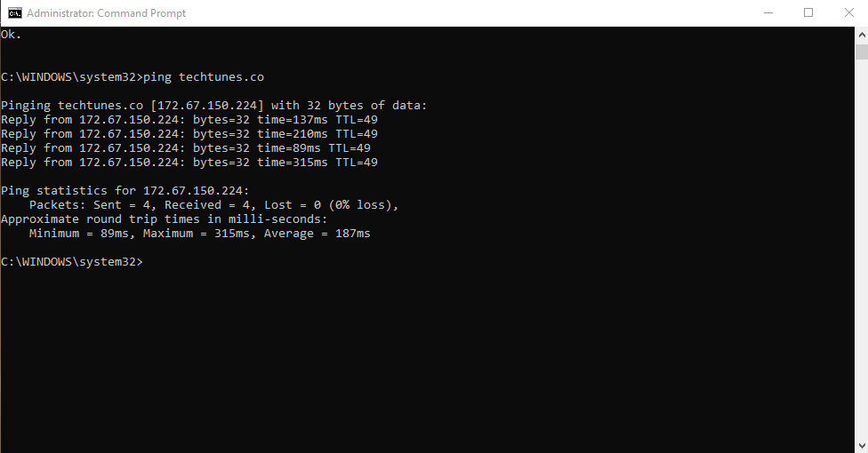 আপনি যদি নির্দিষ্ট ওয়েবসাইট Ping করতে চান তাহলে নিচের কমান্ড ব্যবহার করুন