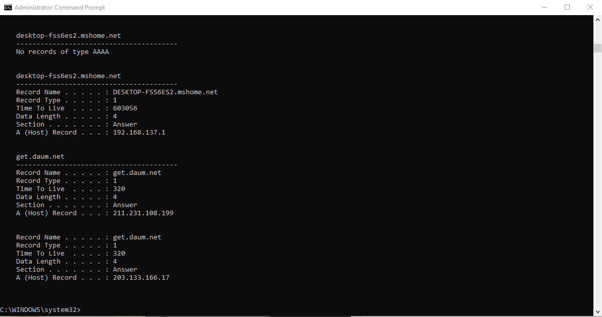 আপনি যদি নির্দিষ্ট ওয়েবসাইটের DNS সংক্রান্ত তথ্য দেখতে চান তাহলে নিচের কমান্ডটি দিন।