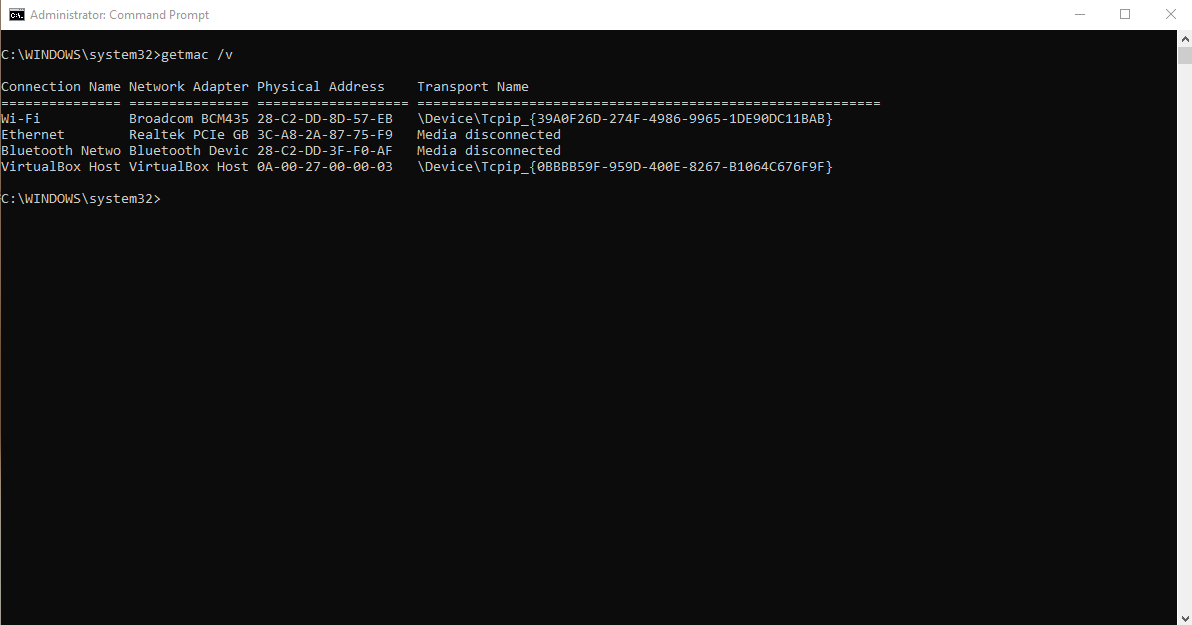 আপনি যদি পিসির ম্যাক এড্রেস দেখতে চান তাহলে নিচের কমান্ডটি দিন। এখান থেকে আপনি ম্যাক এড্রেস, DNS এড্রেস সহজেই দেখতে পারবেন।