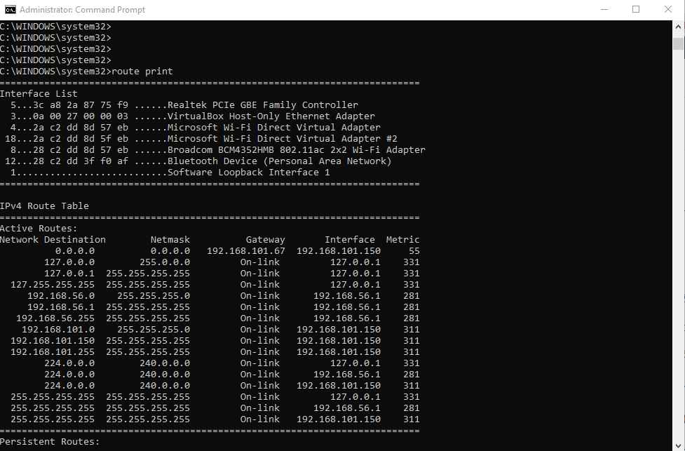 নেটওয়ার্কের Route সম্পর্কে জানতে নিচের কমান্ডটি দিন