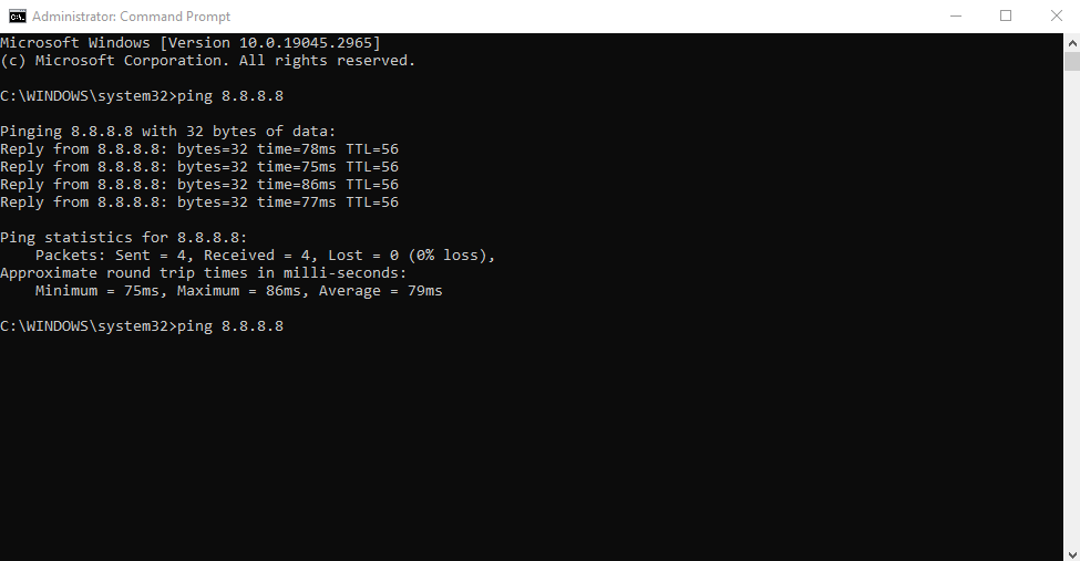 নিচের কমান্ড গুলো দিন। এর মাধ্যমে বুঝতে পারবেন আপনি অনলাইনে যেতে পারছেন কিনা। এখানে 8.8.8.8 হচ্ছে গুগলের DNS সার্ভার।