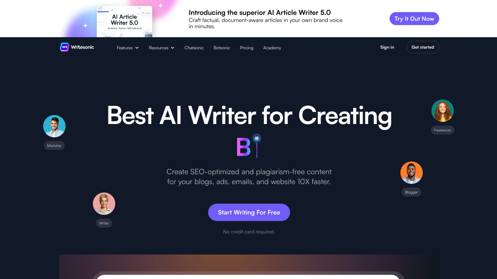 ChatGPT এর কিছু লিমিটেশনের কথা চিন্তা করে GPT-4 পাওয়ারড নতুন AI টুল হচ্ছে WriteSonic। তারা নিজেদের ChatGPT এর সেরা বিকল্প বলে দাবী করে। তারা সাম্প্রতিক তথ্য নিয়ে কাজ করে, তথ্য কালেক্ট করে বিভিন্ন গুগল সার্চ থেকে। এটি বিশেষ করে কপি-রাইটিং এর জন্য তৈরি করা হয়েছে তবে তাদের আছে ChatGPT এর বিকল্প ChatSonic।
