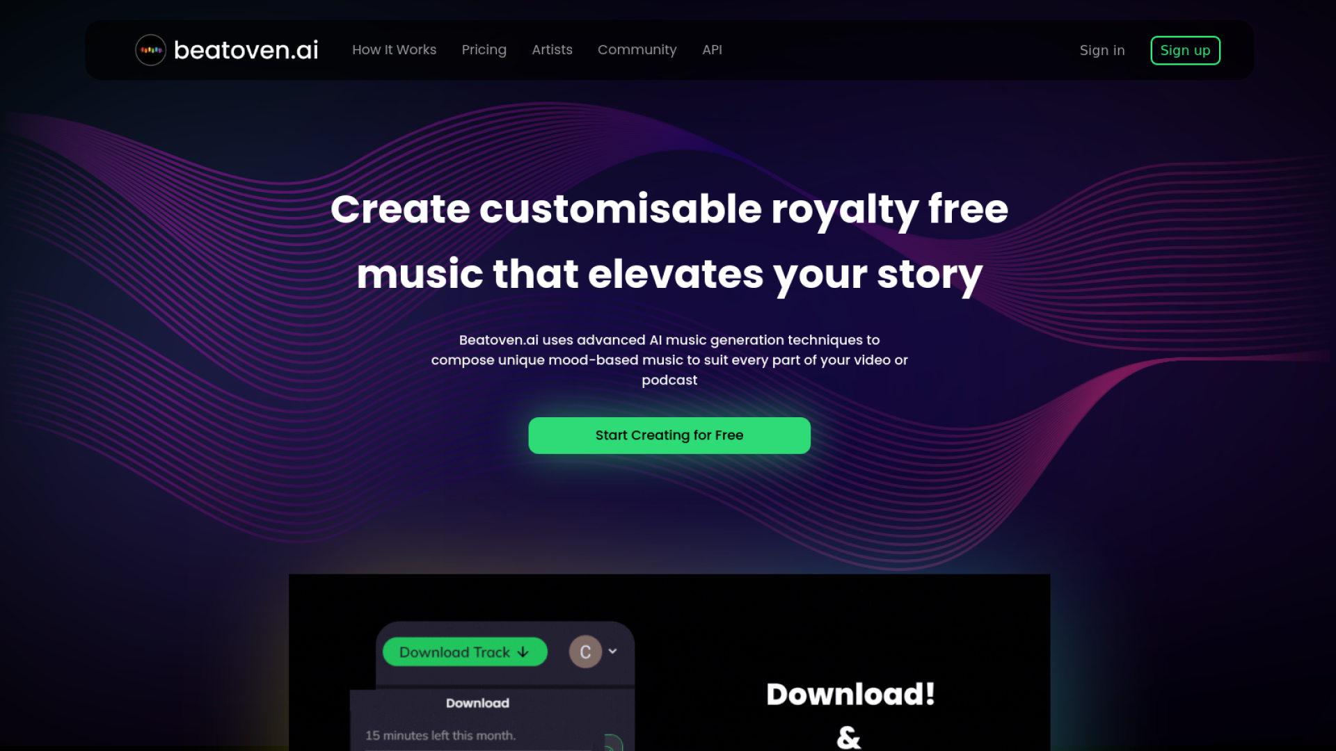 কপিরাইট ফ্রি মিউজিক জেনারেট করার দারুণ একটি AI টুল হচ্ছে Beatoven। create new track এ ক্লিক করে, টাইটেল, ডিউরেশন, Tempo দিন এবং Genre সিলেক্ট করুন। এটি মুহূর্তেই আপনার জন্য কপিরাইট ফ্রি মিউজিক ক্রিয়েট করে দেবে একই সাথে কয়েকটা অলটারনেটিভ মিউজিকও পেয়ে যাবেন।
