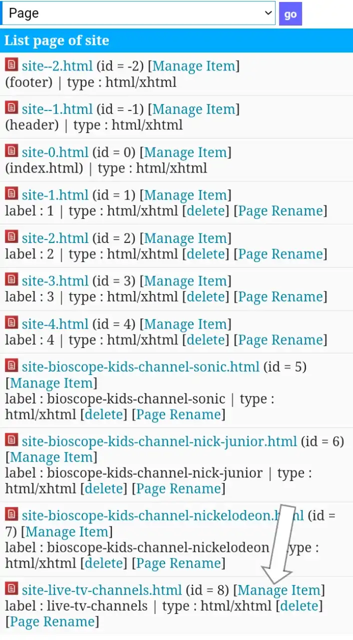 এখন আপনি আপনার তৈরি করা পেজ এর manage Item অপশন ক্লিক করুন