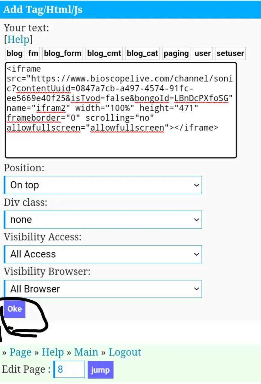 যে বক্স উপরে সেখানে আপনার নির্দিষ্ট টিভি চ্যানেলের কোড পেস্ট করে দিন, কোন কিছু চেঞ্জ না করে ওকে অপশনে ক্লিক করুন।