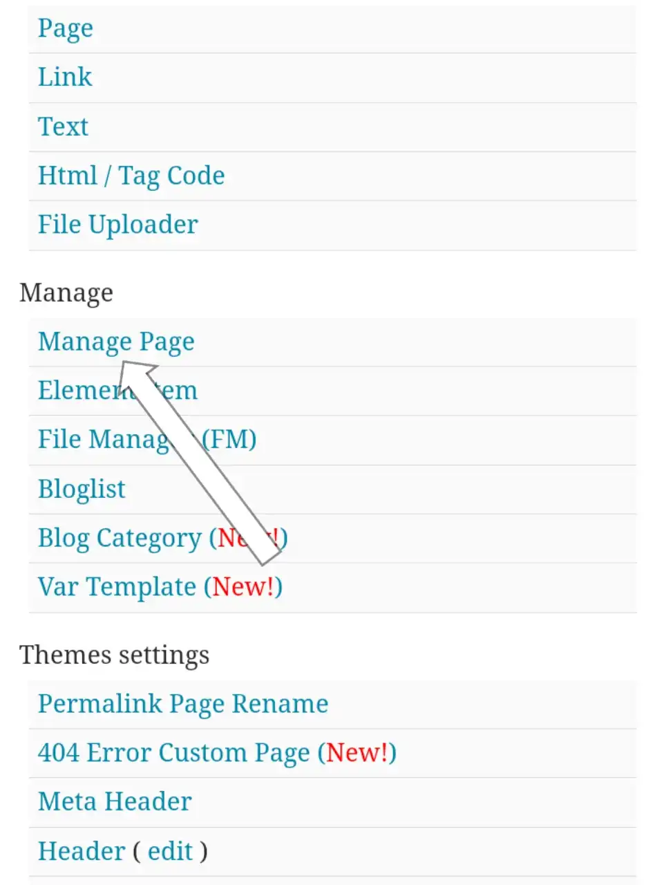 Manage page অপশনে ক্লিক করবেন Then