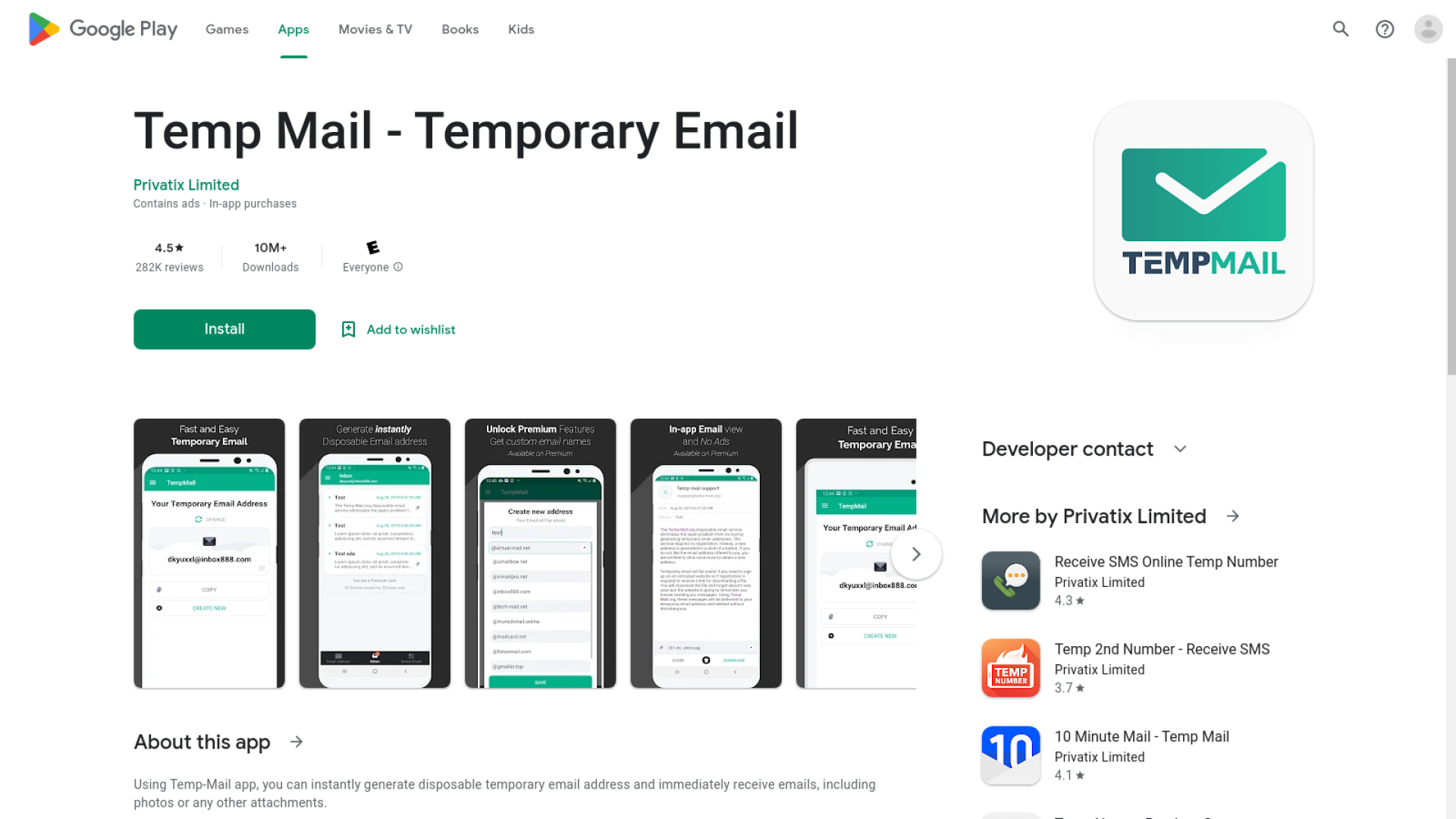 প্রতিদিন আমাদের বিভিন্ন কাজে ইমেইল এড্রেস এর প্রয়োজন হতে পারে। সব জায়গায় আসল ইমেইল ব্যবহার করাও নিরাপদ না। আপনি যদি প্রতিদিন আনলিমিটেড ইমেইল এড্রেস পেতে চান তাহলে ব্যবহার করতে পারেন Temp Mail অ্যাপটি।