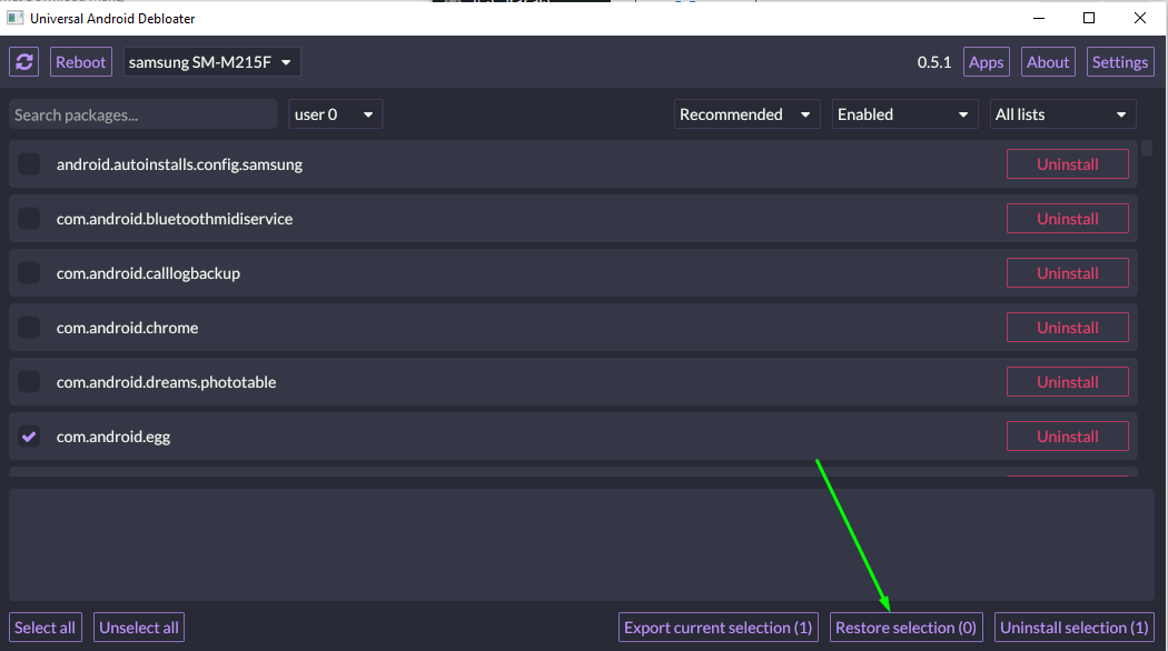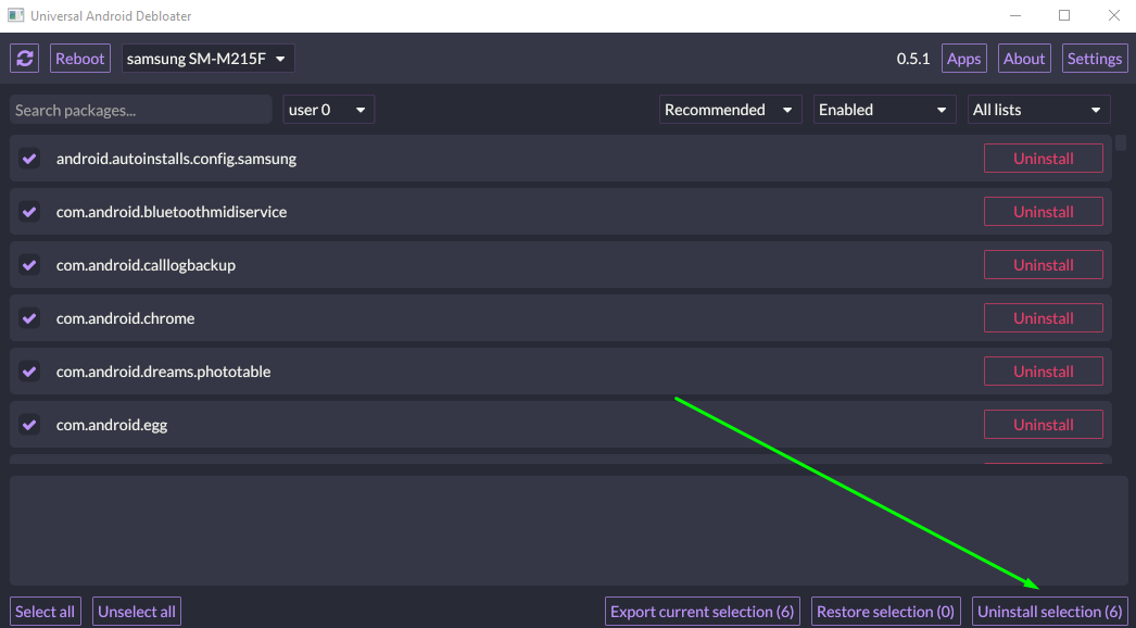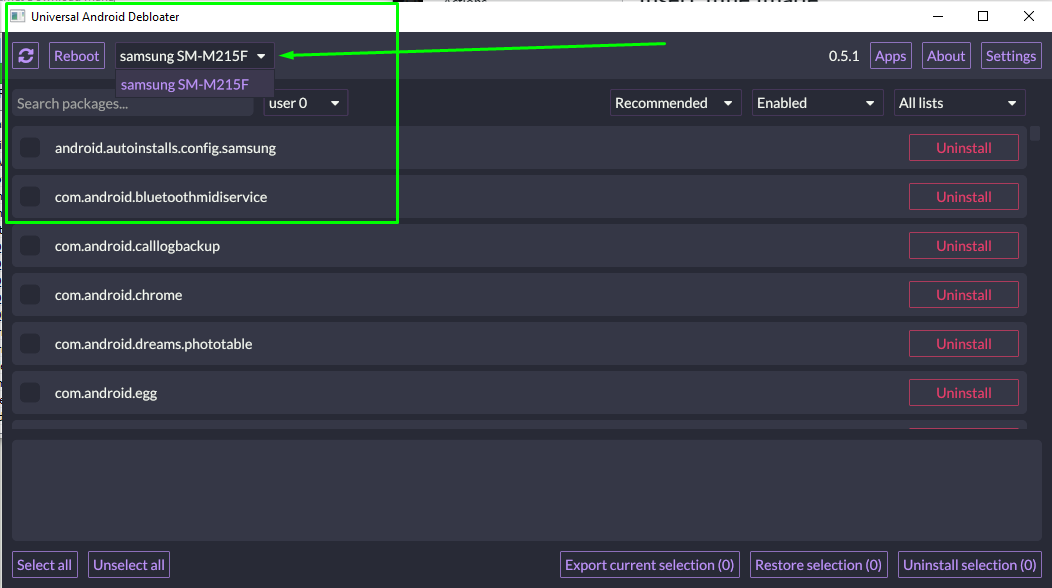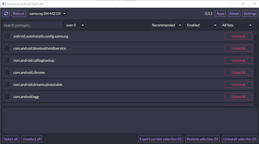 ফোনটি কানেক্ট হলে UAD আপনাকে কিছু অ্যাপ আনইন্সটল করতে রিমোমেন্ড করবে। চাইলে আপনি ফিল্টারও করতে পারেন।