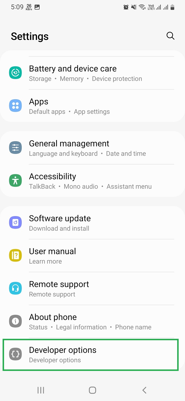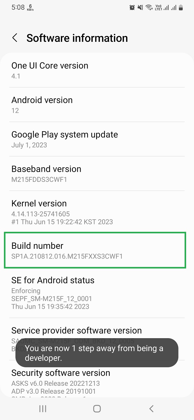 আপনার ফোনটি ডেভেলপার মুডে নিন। ডেভেলপার মুডে নিতে About Phone > Software information এ যান এবং Build Number এ সাত বার ক্লিক করুন।