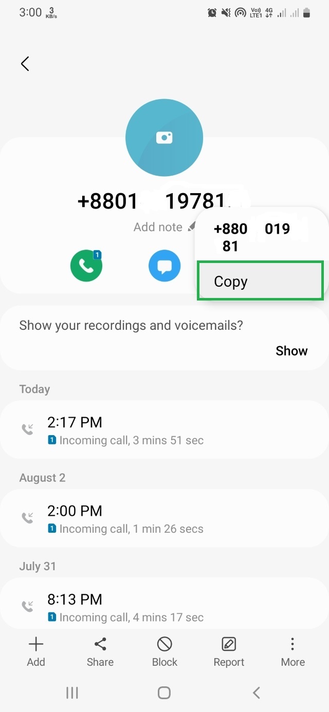 দেখুন নাম্বারটি নীল দেখাচ্ছে। এবার নাম্বারটিতে ট্যাপ করে, মেসেজ বা কল করতে পারবেন।