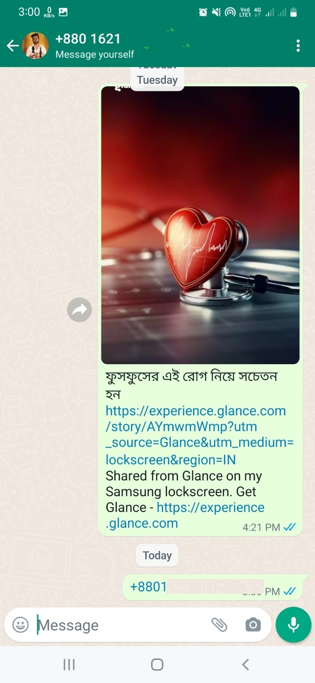 এবার নাম্বারটি আপনার নিজের একাউন্টে অথবা কোন গ্রুপে সেন্ড করুন