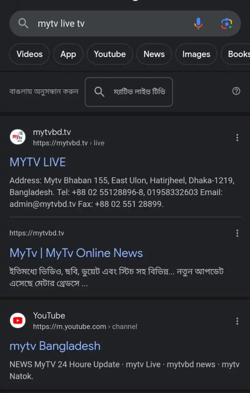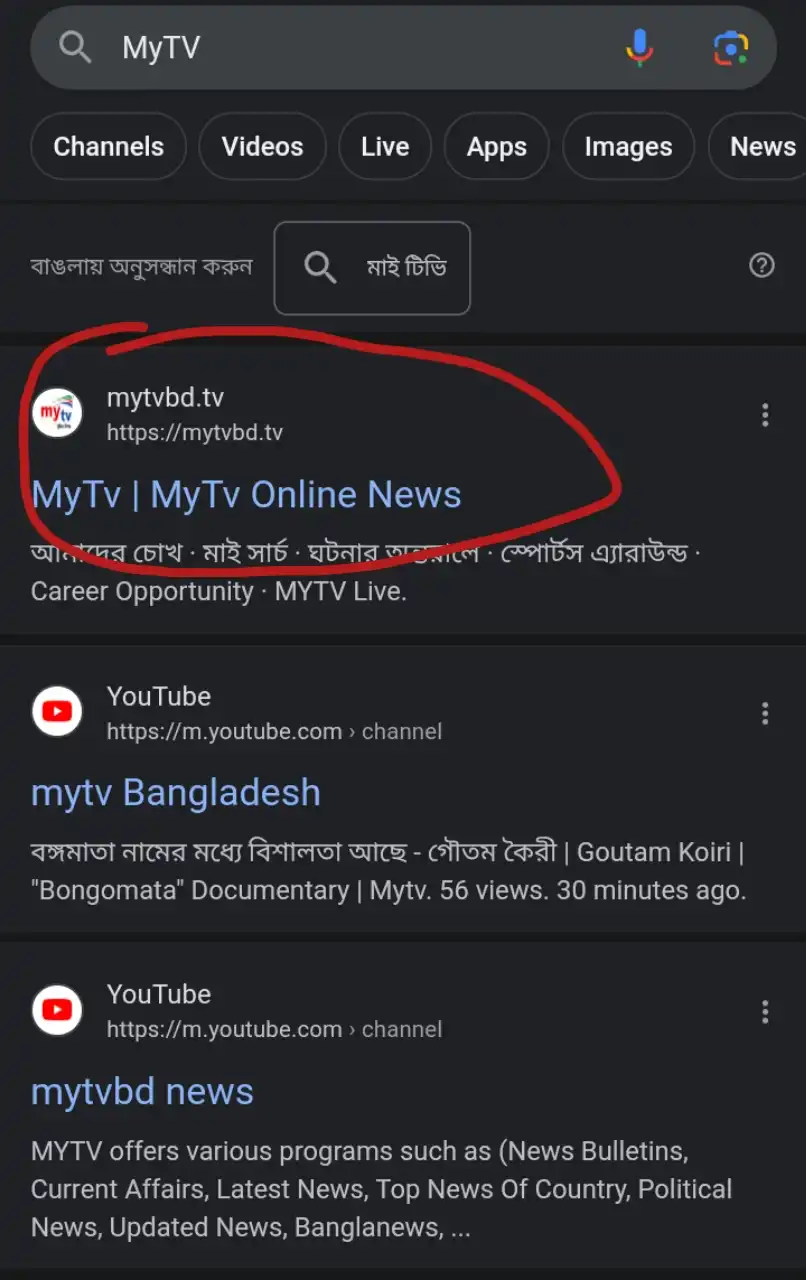 mytv live tv গুগলে সার্চ বা অনুসন্ধান করলে শুরুতে পাওয়া যাবে।