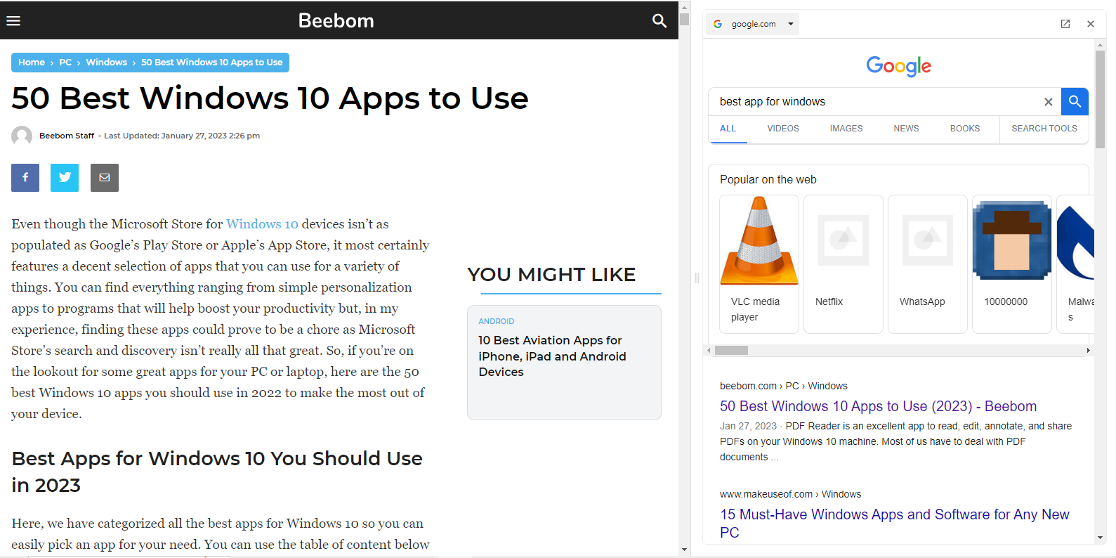 গুগলের নতুন ফিচারের মাধ্যমে আপনি গুগলের পেজটি স্ক্রিনের সাইডে রেখে একটা একটা করে বিভিন্ন পেজে যেতে পারবেন। নিচের স্ক্রিনশটটি দেখুন,