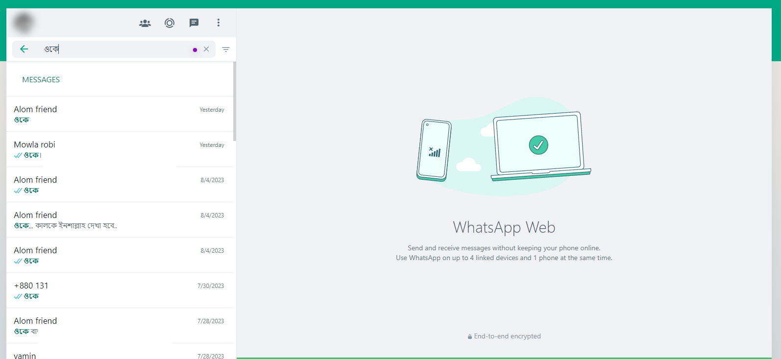 WhatsApp এর ওয়েব ভার্সনে গিয়ে সার্চ আইকনে ক্লিক করে নির্দিষ্ট কীওয়ার্ড দিয়ে মেসেজ সার্চ করতে পারবেন, Unsend অনুযায়ী চাইলে ফিল্টার করতে পারেন।
