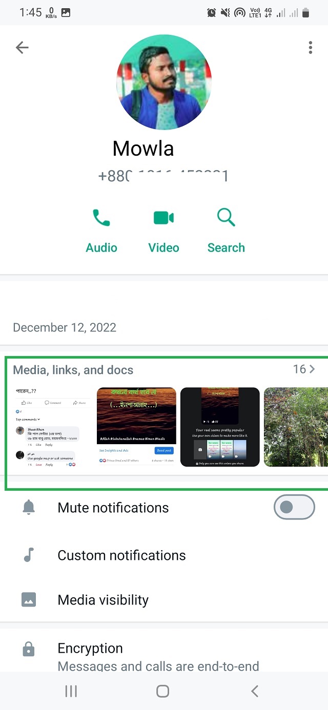 ইনফো স্ক্রিন থেকে Media, Links and Docs এ ট্যাপ করুন