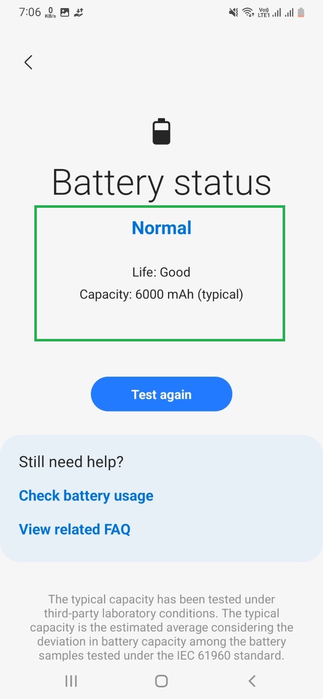 যদি Normal স্ট্যাটাস এবং ব্যাটারি Life এ Good থাকে তাহলে চিন্তার কিছু নেই আপনার সব কিছু ঠিক আছে তবে এখানে Action required এবং ব্যাটারি লাইফ Bad মার্ক করা থাকলে ব্যাটারিটি কেয়ার থেকে রিপ্লেস করিয়ে আনতে হবে।
