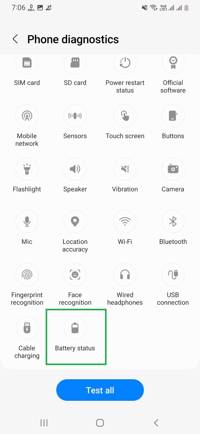 Samsung তার ইউজারদের কমিউনিটি মেইনটেইন করতে Member নামে একটি অ্যাপ রেখেছে যেখানে বিভিন্ন নিউজ, সাপোর্ট ইনফরমেশন ইত্যাদি পাওয়া যায়। এই অ্যাপে কিছু ডায়াগনোসিস টুলও রয়েছে যার মাধ্যমে ফোনের হার্ডওয়্যার চেক করা যায়৷ এই অ্যাপের মধ্যমে পারসেন্টেজ দেখা যাবে না তবে Good, Weak স্ক্যালে ব্যাটারির হেলদ সম্পর্কে জানা যাবে।