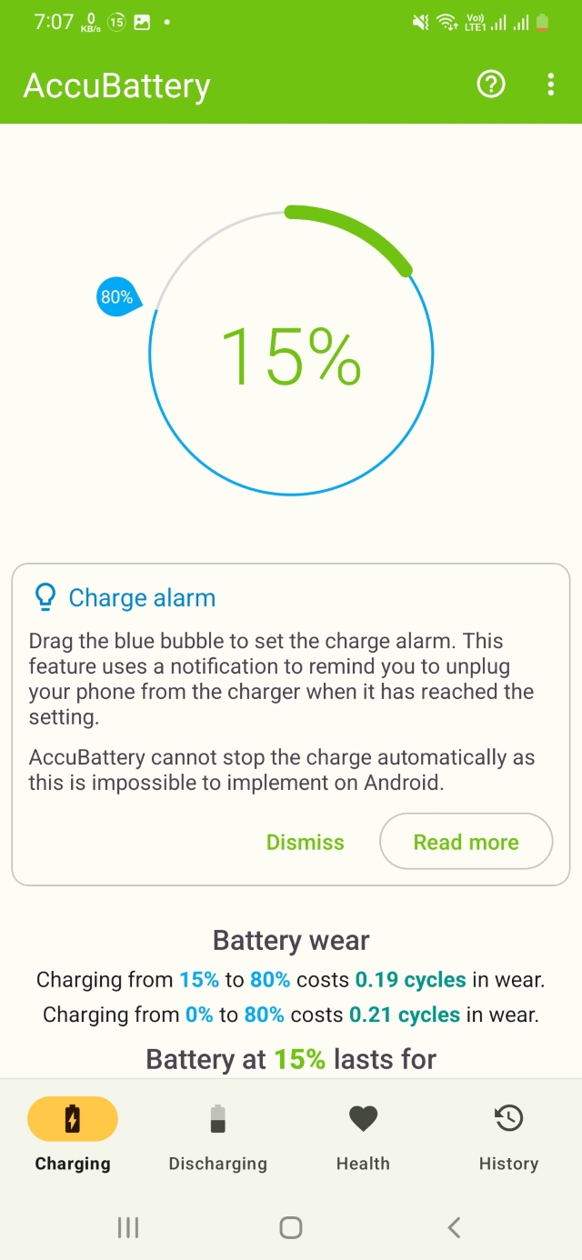 আপনি চাইলে যেকোনো অ্যান্ড্রয়েড ফোনে থার্ডপার্টি অ্যাপের মাধ্যমে ব্যাটারি হেলদ যাচাই করতে পারেন। এই ক্যাটাগরিতে AccuBattery অ্যাপটি ভাল কাজ করে। এই অ্যাপটির মাধ্যমে বিভিন্ন ইনফরমেশন আপনি জানতে পারবেন যেমন কতক্ষণ ব্যাটারি ব্যাকআপ দেবে, কত পার্সেন্ট চার্জ আছে এবং ব্যাটারির টেম্পারেচার কেমন। তবে ব্যাটারি হেলদ ইনফরমেশন পেতে এই অ্যাপটি কিছুদিন আপনার ফোনকে পর্যবেক্ষণ করবে। তথ্য উপাত্ত সংগ্রহ হয়ে গেলে আপনি ব্যাটারি পার্সেন্টেজ দেখতে পাবেন।