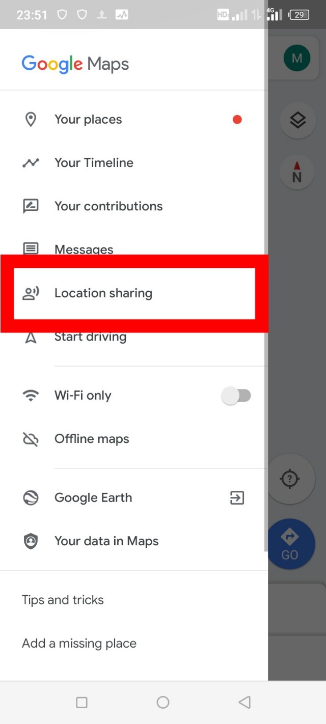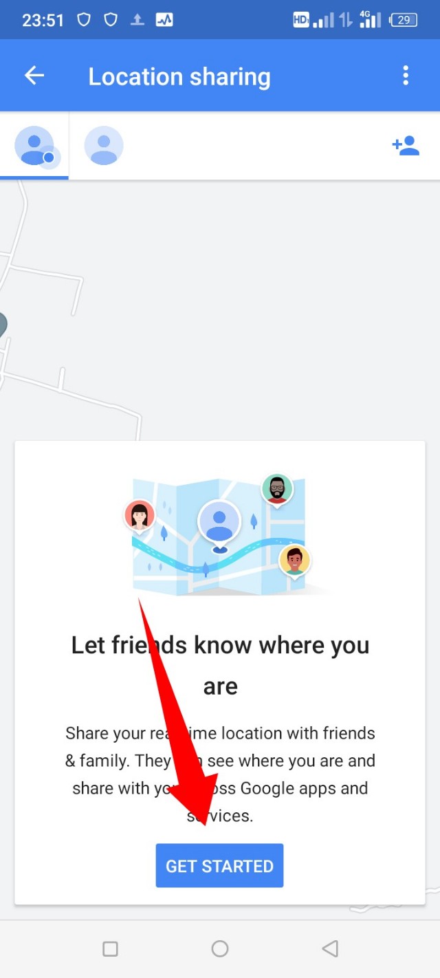 ৪. আমার এখানে দেখতে পাচ্ছেন এখানে লোকেশন শেয়ারিং করতে বলা হচ্ছে এবং এখানে কোন নাম কিংবা জিমেইল অ্যাড্রেস নেই। তার মানে আমার লোকেশন শেয়ার হচ্ছে না এবং কেউ আমার সাথে তার লোকেশনও শেয়ার করছে না।
