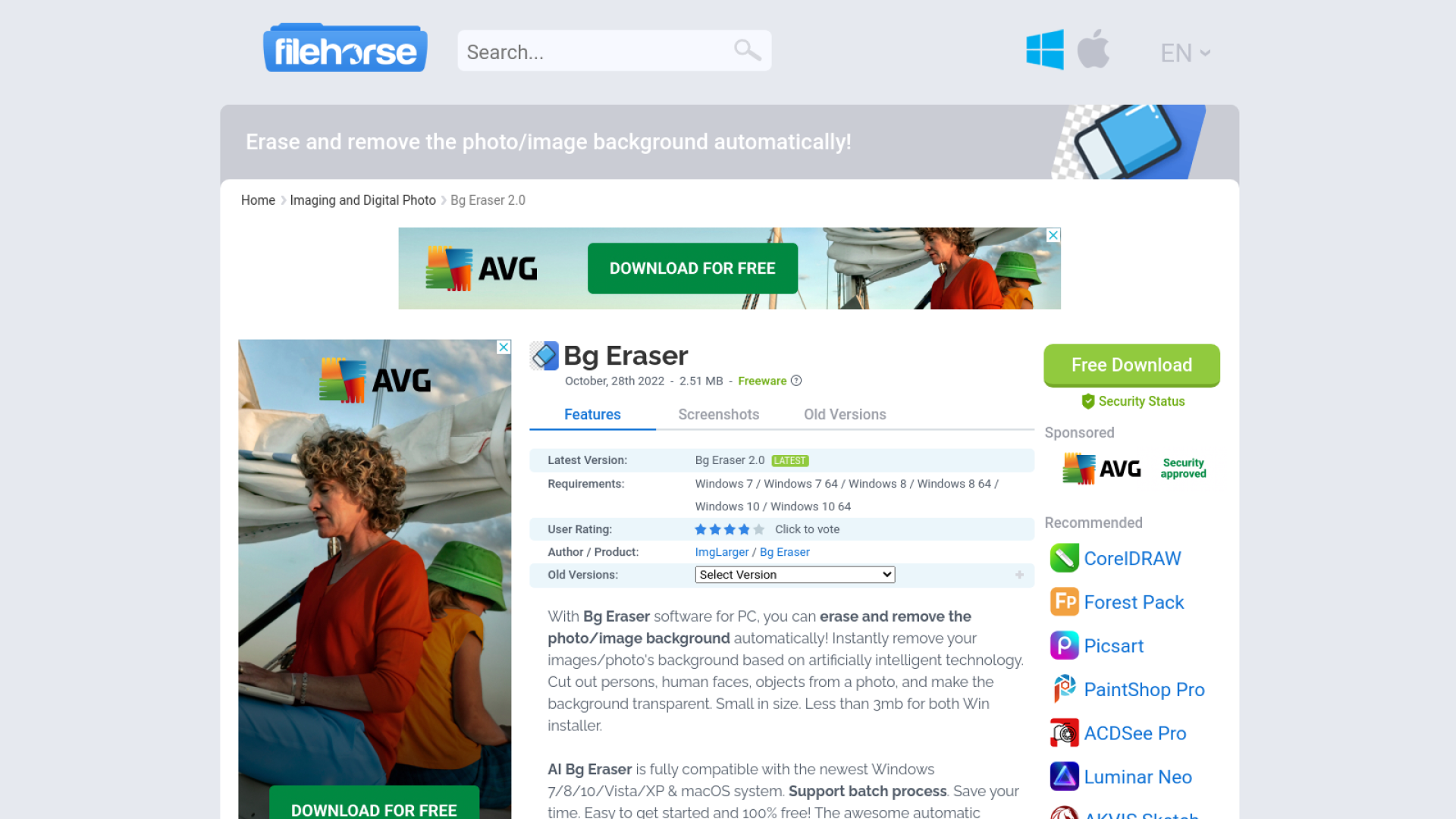 উইন্ডোজের জন্য সেরা ব্যাকগ্রাউন্ড ইমেজ রিমুভার হচ্ছে BgEraser। সহজেই এই অ্যাপটি ব্যবহার করা যায়৷ এটি AI এর মাধ্যমে ইমেজ থেকে ব্যাকগ্রাউন্ড রিমুভ করবে। অ্যাপটি BgErager এর অনলাইন ভার্সনের API ব্যবহার করে কাজ করবে।