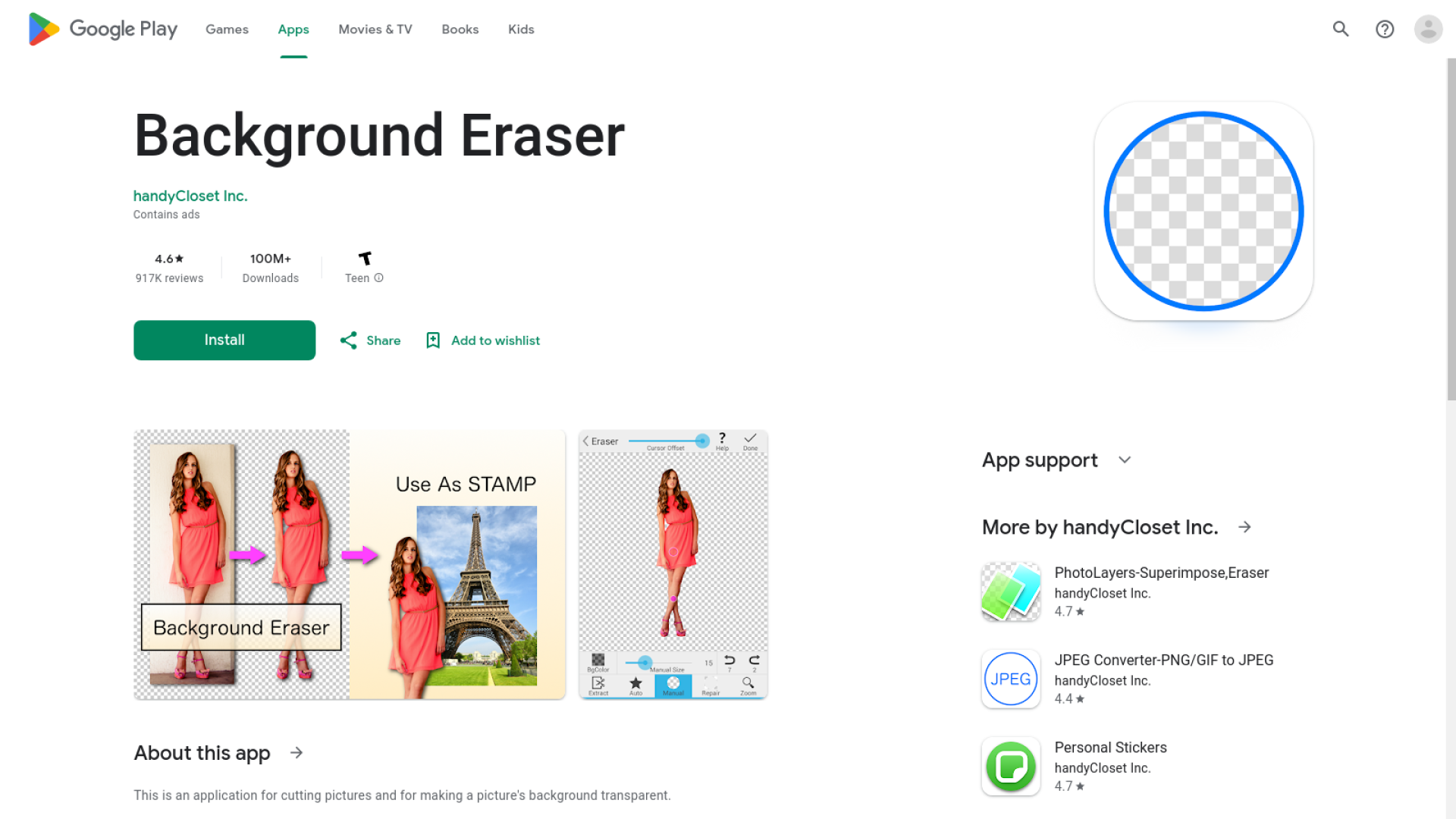 যদিও এই Background Eraser অ্যাপে আপনাকে এড দেখতে হবে তারপরেও এন্ড্রয়েডের জন্য সেরা ব্যাকগ্রাউন্ড রিমুভার টুল এটি। এই টুলটি তৈরি করেছে handyCloset Inc। প্রো ভার্সন আপনি ৪ ডলারেরও কমে আপনি কিনতে পারবেন। এটি ইমেজের সাথে সামঞ্জস্যপূর্ণ ব্যাকগ্রাউন্ডও যোগ করতে পারে।