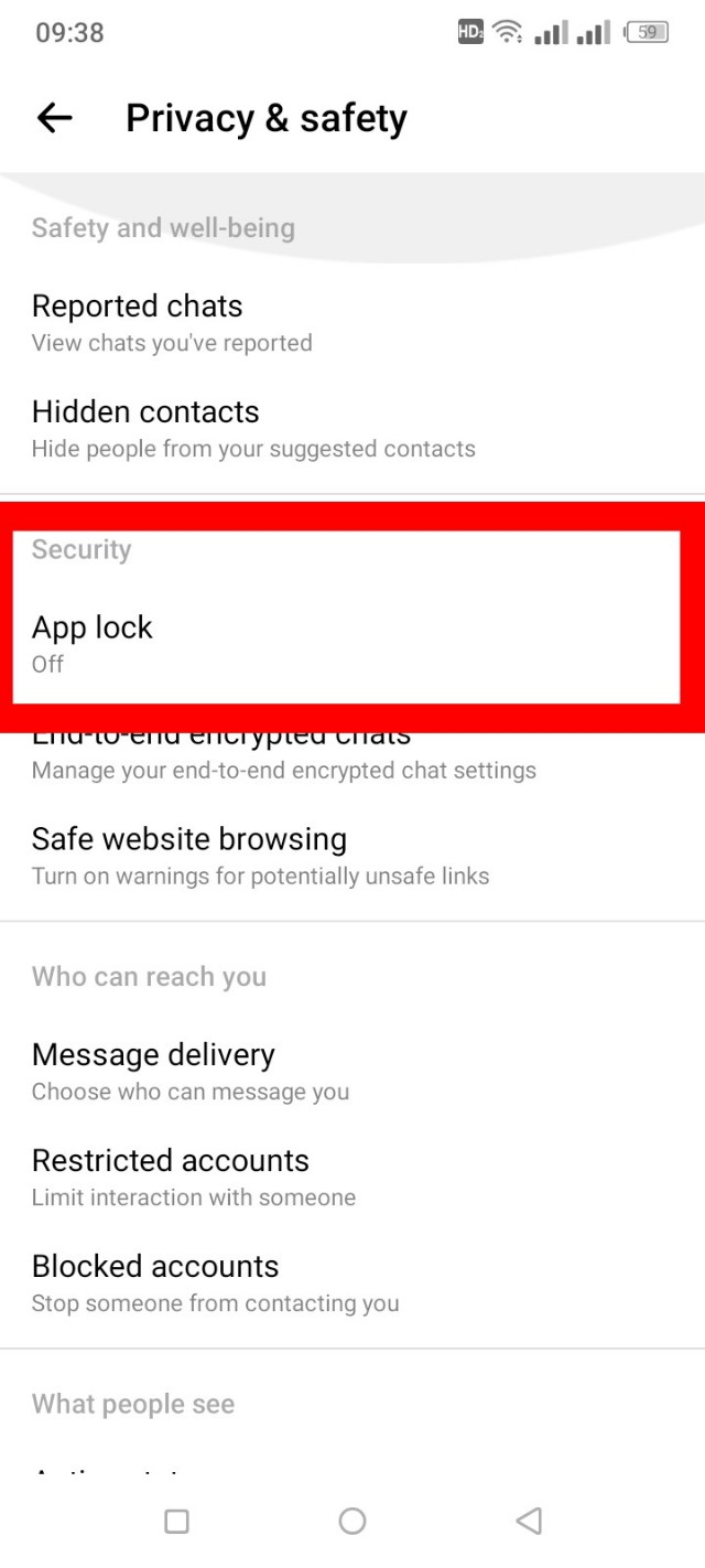 ৫. ট্যাপ করার পর এখানে সেই নতুন ফিচারটি দেখতে পাচ্ছেন app lock যা মেসেঞ্জার নতুন করে যুক্ত করেছে। এই নতুন ফিচারের উপর ক্লিক করুন।