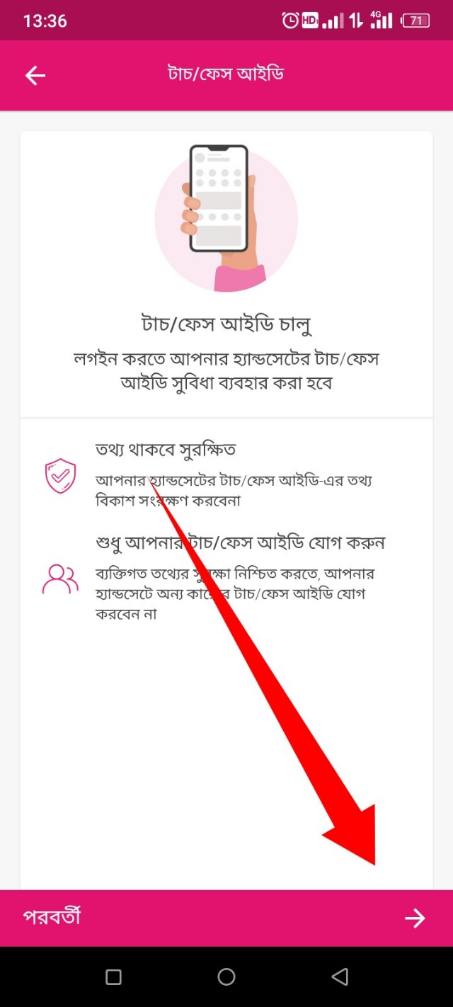৬. ফিঙ্গারের উপর ট্যাপ করার পরে আপনার সামনে একটি নোটিফিকেশন শো করবে, এখানে নিচে দেখতে পাবেন পরবর্তী একটি অপশন আছে এটির ট্যাপ করতে হবে।