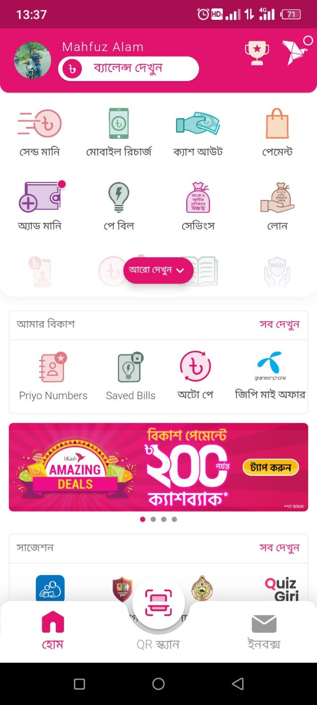 ১. প্রথমে আপনার ফোনে যে বিকাশ অ্যাপে ফিঙ্গারপ্রিন্ট সেট করেছেন এটি ওপেন করে নিন।