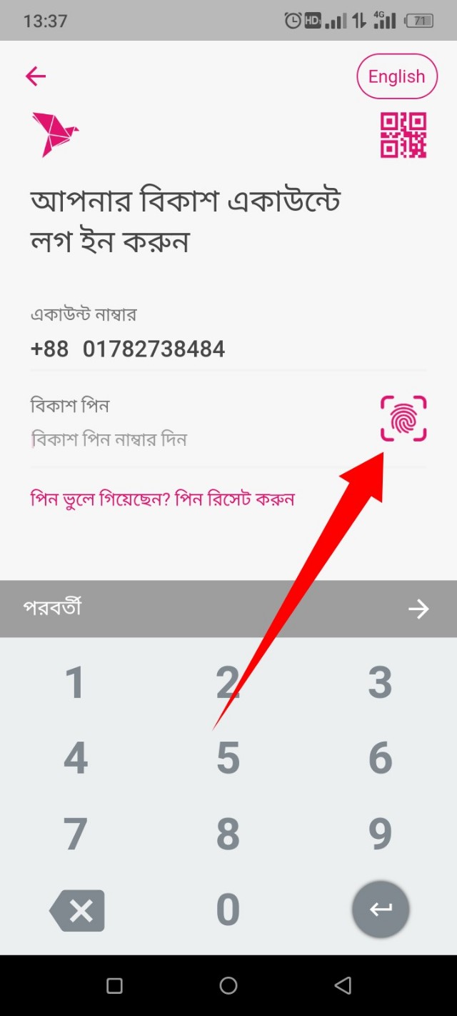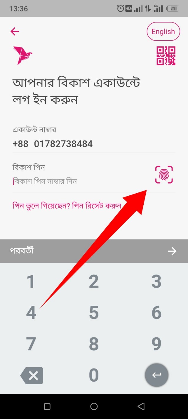 ৩. তারপর এখানে আপনার সেট করা ফিঙ্গার দিলেই বিকাশ অ্যাপ ওপেন হয়ে যাবে কোন পিন ছাড়াই।