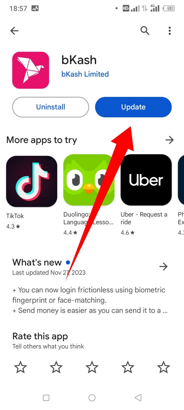 ৪. Update করার পরে Bkash অ্যাপ ওপেন করে নিবেন।