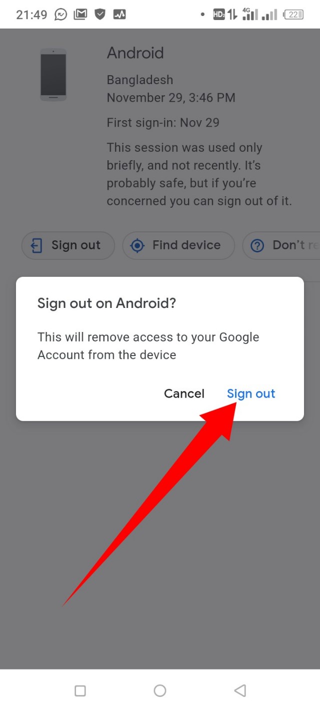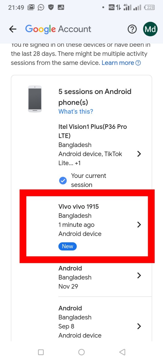 যখন আপনার সামনে একটি মোবাইল এর নাম এবং মডেল নাম্বার শো হবে তখন বুঝে নিবেন যে শুধু মাত্র আপনার ফোনেই আপনার Gmail লগইন আছে। তার মানে এখন আপনি রিস্ক মুক্ত।