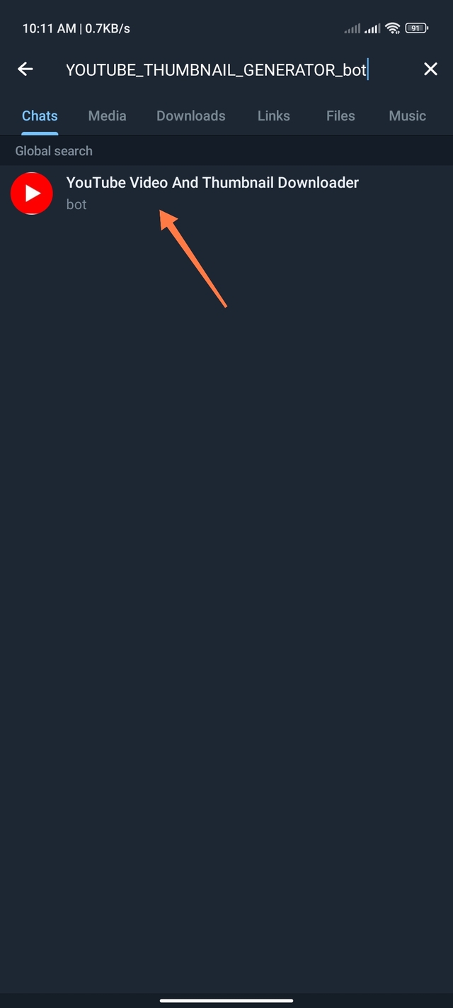 ৩. তারপর আপনারা সার্চ অপশনে লিখবেন @YOUTUBE_THUMBNAIL_GENERATOR_bot তারপর নিচের আমার দেখানো বটটিতে ক্লিক করবেন।