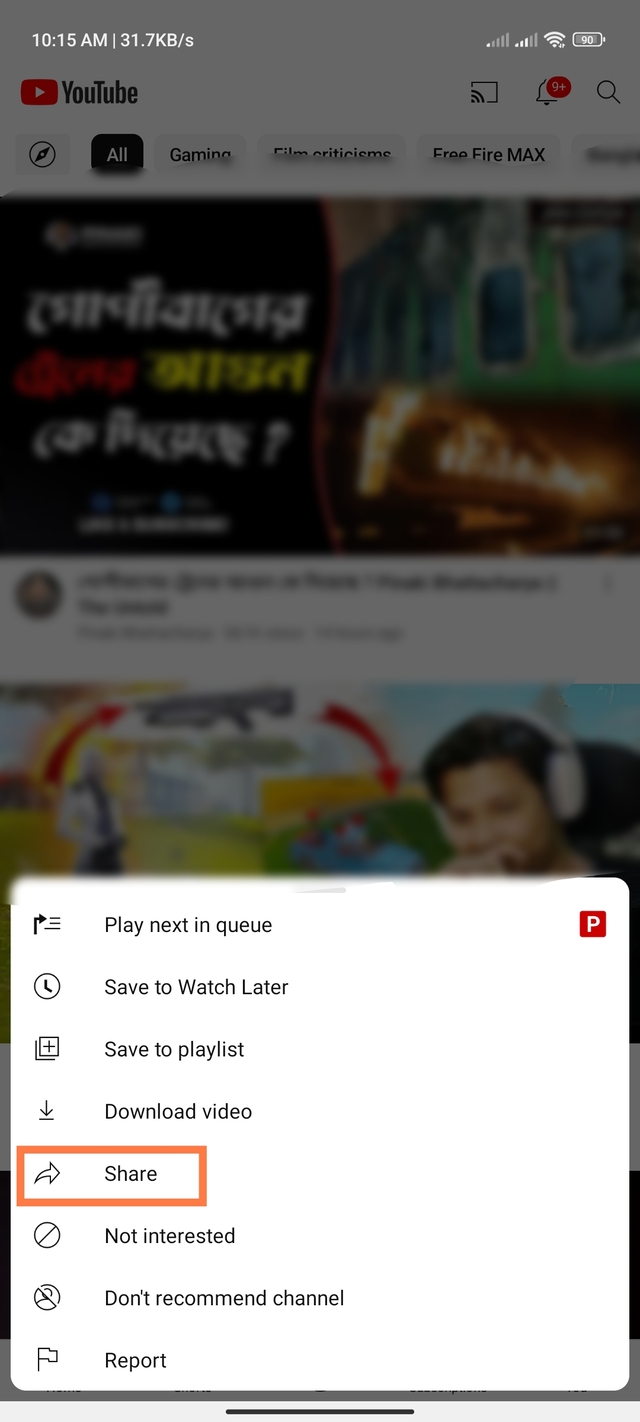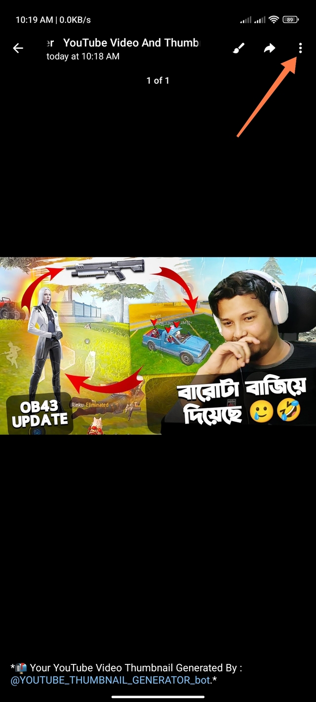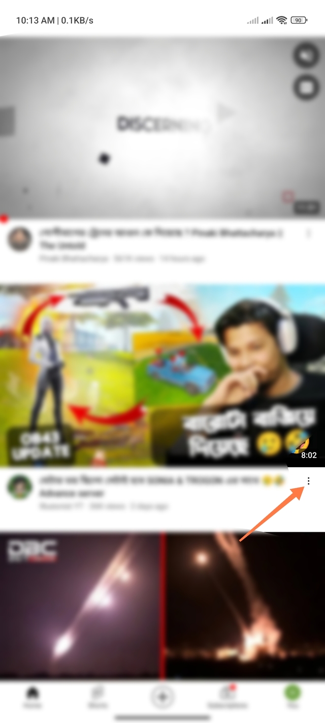 ৫. তারপর আপনারা চলে যান আপনাদের Youtube App টিতে সেখান থেকে যে ভিডিওর থাম্বনেইল ডাউনলোড করতে চাচ্ছেন সেই ভিডিওটির থ্রি-ডট মেনুবারে ক্লিক করুন।