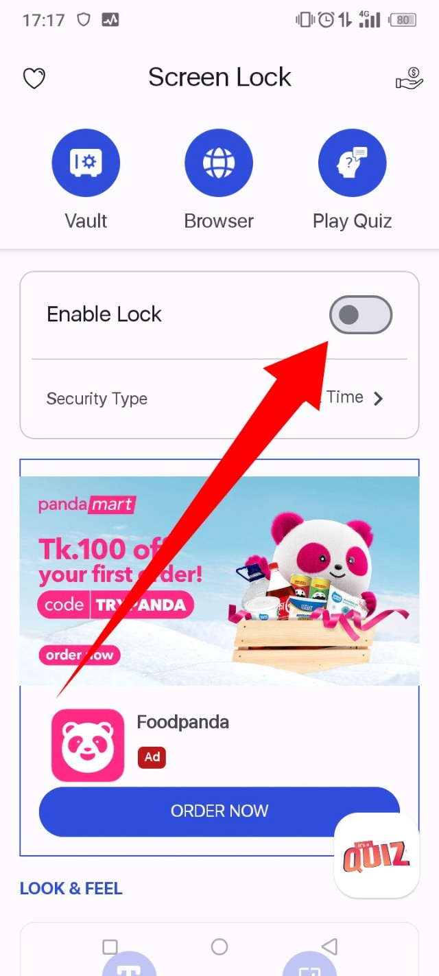 Enable Lock এর ডান পাশের আইকন অন করার সময় যদি কোন পারমিশন চায় Allow করে দিবেন।