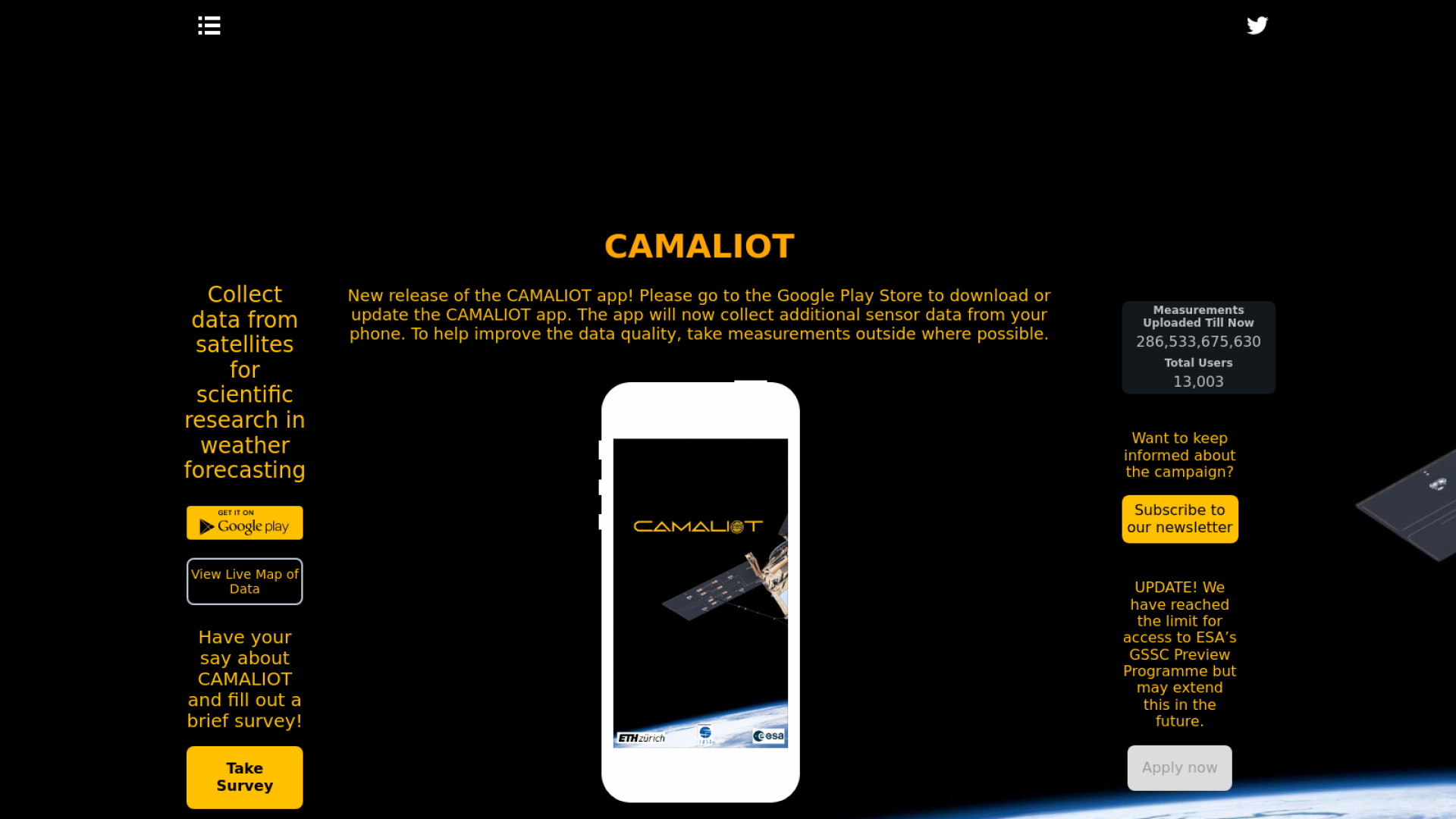 Camaliot অ্যাপ একটি পাওয়ারফুল অ্যাপ যার মাধ্যমে আপনি মোবাইল ব্যবহার করেই স্যাটেলাইট ডাটা সংগ্রহ করতে পারবেন। যদিও অ্যাপটি ক্রাউডসোর্সড বিজ্ঞানকে সাহায্য করার জন্য তৈরি করা হয়েছে, তবে আপনি নিজস্ব প্রজেক্টে এই ডাটা গুলো ব্যবহার করতে পারবেন। অ্যাপটি বিজ্ঞানীদের আবহাওয়ার প্যাটার্ন সঠিক ভাবে প্রদান সহ আরও অনেক তথ্য দিয়ে সহযোগিতা করতে পারে।