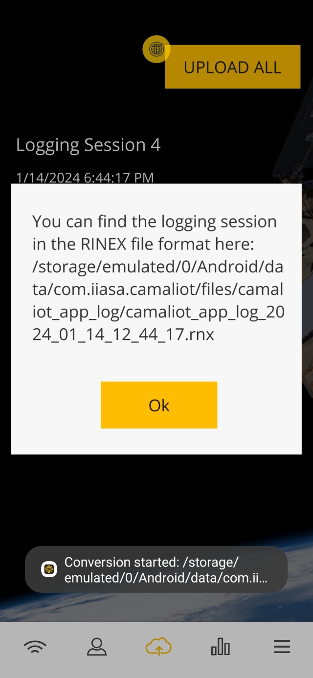 Raw স্যাটেলাইট ডাটা কালেক্ট করতে Start Logging এ ট্যাপ করুন৷ Automatic upload এ টিক দিয়ে রাখলে প্রতি সেশন পর এটি অটোমেটিক লগ ফাইল আপলোড করে দেবে।