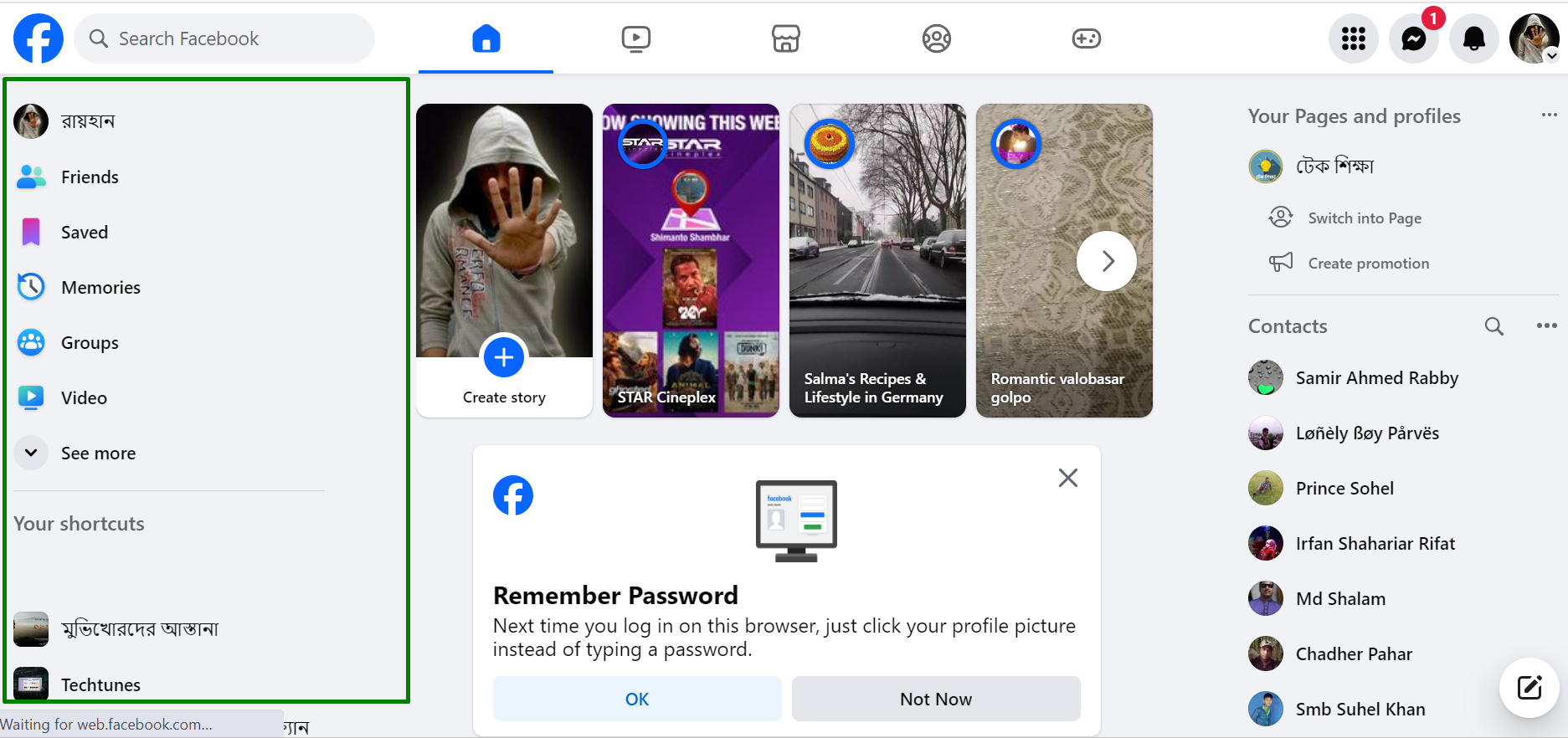 এখন আমরা ফেসবুক ন্যাভিগেশন আইকন গুলো সম্পর্কে জানব এবং তাদের কাজ দেখব। ন্যাভিগেশন আইকন গুলো আপনি পাবেন স্ক্রিনের বামপাশে।